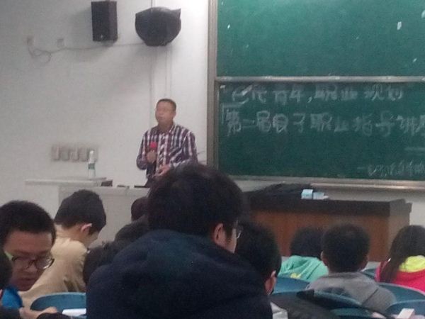 讲座在阵阵掌声中拉开了帷幕,时任华迪集团经理陈一虎先生上台向在座同学介绍了华迪公司的现状及创新发展。随后,陈先生以自己的亲身经历,逐步引出本次讲座的主题,并就同学们所学的专业前景进行系统分析,提出自己的见解和建议。最后,在自由问答环节,同学们积极踊跃,同时,陈一虎经理就同学的所关心的、所疑惑的问题进行了细致解答。在热烈的掌声之中,本次职业指导讲座圆满落幕。