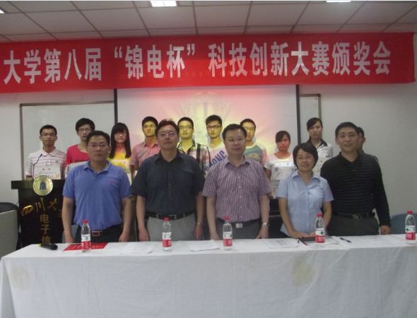 2012年5月8日下午两点,四川大学第八届“锦电杯”科技创新大赛颁奖典礼在望江校区基础教学楼A303成功举行。成都锦江电子系统工程有限公司总经理陈泽铭先生、人劳企营处处长程晓明女士、yl23411永利(集团)有限公司官网黄卡玛院长、yl23411永利(集团)有限公司官网周新志副院长、yl23411永利(集团)有限公司官网党委陈笃海副书记莅临本次颁奖典礼。颁奖典礼由周院长主持。