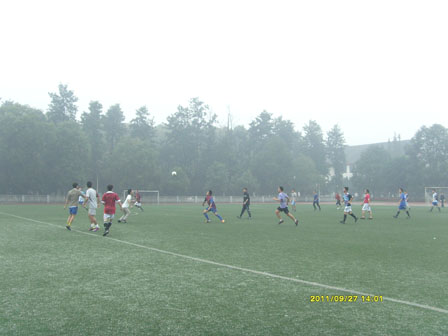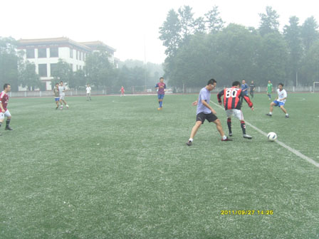 2011年9月27日中午12:30,yl23411永利(集团)有限公司官网与制造学院研究生新生顶着蒙蒙细雨在东区足球场展开了一场激烈的友谊赛。