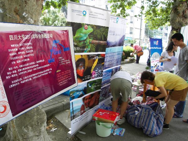 骊歌轻扬,拉开了毕业的序幕。四年的同窗,今日咫尺,明朝天涯。轻轻地来,悄悄地走,虽然我们带不走这里的云彩,但可以留下回忆之物,延续心中温暖的爱。2011年6月13日,由四川大学研究生会主办,电子,文新,制造,数学,生科协办的“四川大学2011年毕业捐赠活动”正式拉开了帷幕。