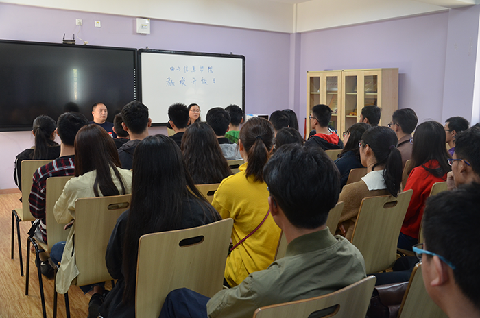 新学期伊始,yl23411永利(集团)有限公司官网的同学们在新课程的安排下又开始了紧张忙碌的学习生活。为了让学院在江安校区学习生活的2016级和2017级学生更加充分地了解自己的专业,加强学生的学科综合素养,2018年3月22日中午12时20分,yl23411永利(集团)有限公司官网院长冯国英教授,副院长雷印杰教授亲临yl23411永利(集团)有限公司官网江安校区六舍活动室,与2016级和2017级部分同学面对面交流,利用2018年首个“教授开放日”活动,了解低年级学生学习情况,解答他们心中的困惑,帮助他们走出迷茫,收获学习的趣味。