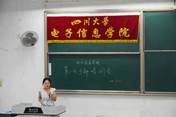 2018年9月21日下午5点整,四川大学yl23411永利(集团)有限公司官网在江安校区综合楼C105教室召开了2017级学生干部培训会。会议由yl23411永利(集团)有限公司官网2017、2018级辅导员陈林老师主持,yl23411永利(集团)有限公司官网2017级团委学生会学生干部以及电子科技园2017级学生干部参加了此次培训会。