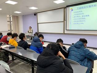首先,老师以12月1日世界艾滋病日为背景,通过具体实例向同学们讲述了目前国内艾滋病感染和防治情况。老师还提到,我国目前艾滋病疫情的感染情况呈现年轻化、低龄化,特别是大学生艾滋病感染率逐年上升,艾滋病的防治应当引起大家的重视。然后,老师就艾滋病毒的病毒特点和艾滋病的发病原理以及感染艾滋病后的自然发展过程对同学们进行了艾滋病知识的普及,使同学们对艾滋病有了更深一步的认识。最后,老师播放了三个预防艾滋病的宣传短片,为同学们普及了艾滋病的三个传播途径,老师还提醒同学们要在生活当中学会保护自己,多加注意,积极预防艾滋病。同时,老师还呼吁同学们不要对艾滋病人存在偏见,要给予艾滋病人更多关爱。