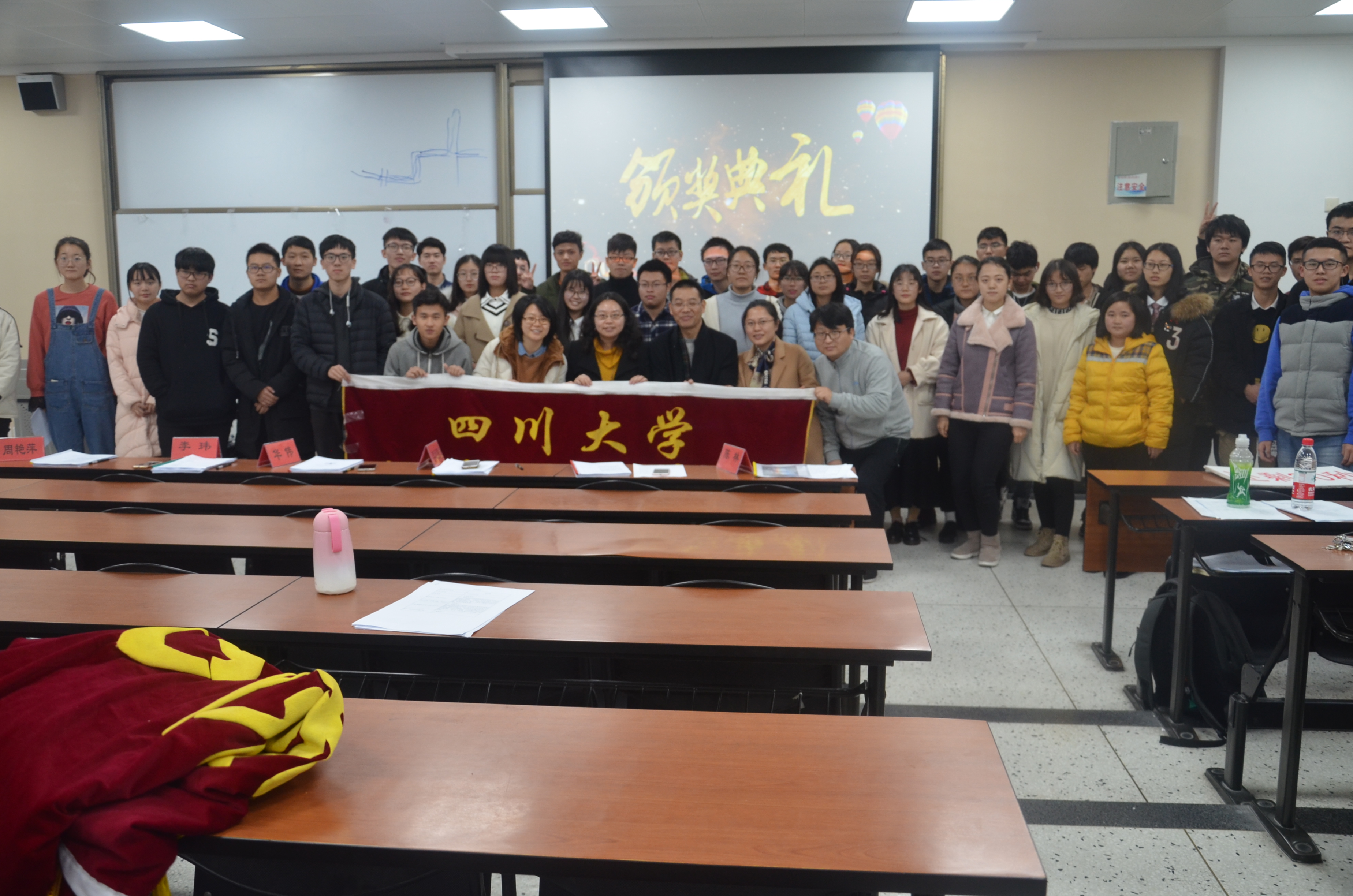 活动伊始,主持人简单介绍了本次活动的流程。之后,便是电子科技园POV协会(第一组)学术型社团指导教师李玮副教授发表讲话。李玮副教授谈到:创新,是推动国家发展,推动社会发展的重要动力。国家有了创新,才有持续发展的源源不断的动力。接着,电子科技园行政指导教师,学院分团委书记李运国老师也发表了讲话。李运国老师首先对参赛选手表达了赞许,他说到:本次比赛既是为了选出具有创新特色的概念产品,也是为了锻炼同学们敢于创新,勇于创新的拼搏精神。李运国老师强调道:比赛不应该仅仅以获奖为目的。获奖固然重要,但在比赛过程中的收获同样重要。所以李运国老师鼓励同学们多多参赛,在比赛中锻炼自己!交流会环节结束后,便到了最激动人心的颁奖环节。主持人宣布获奖同学的名单,李运国老师,李玮副教授等嘉宾为获奖选手颁奖,并合影留念。台下观众纷纷鼓掌,表达自己对获奖选手的祝贺。活动最后,参与活动的全体人员进行了合影,为本次活动画下了完美的句号!