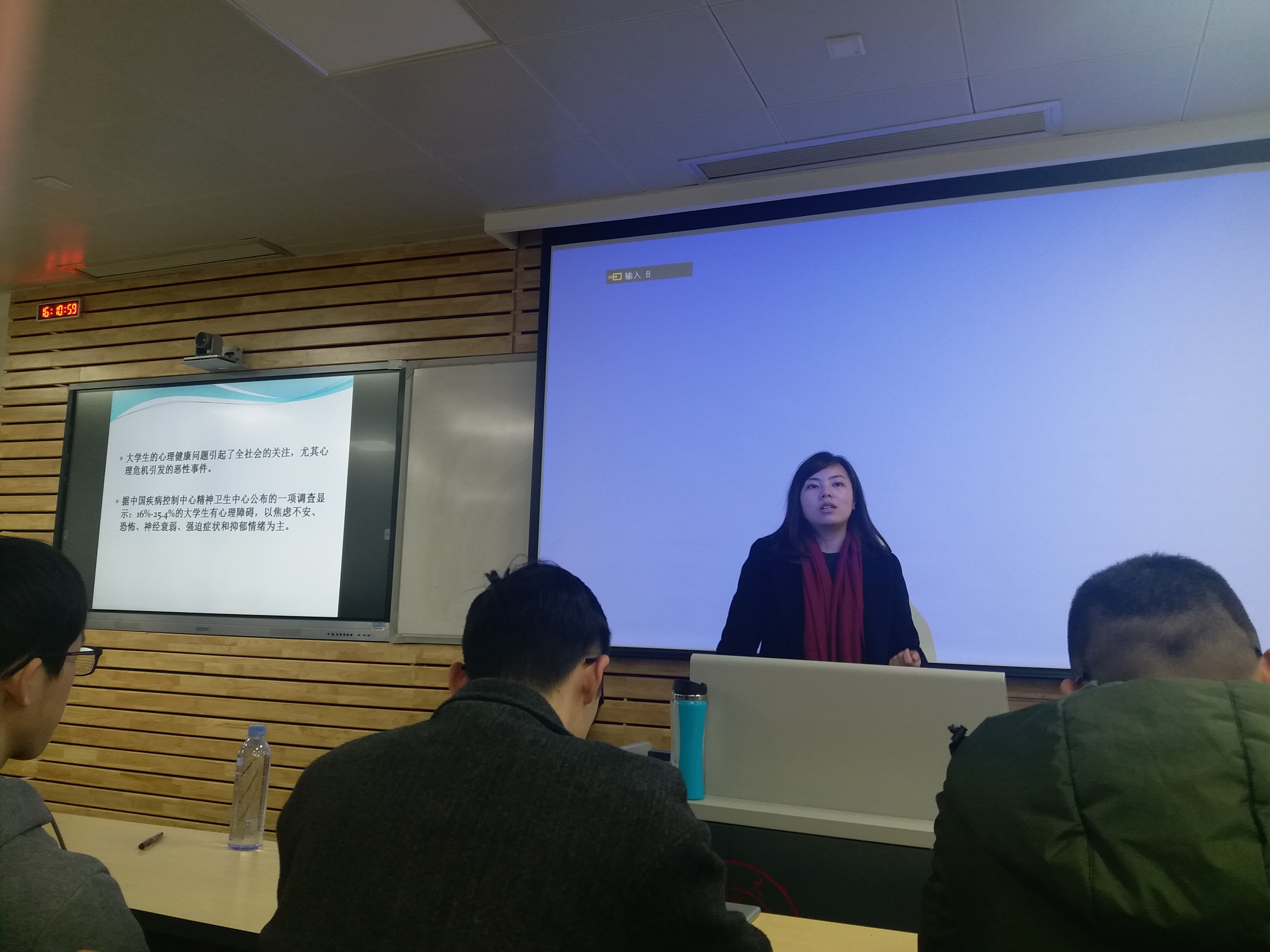 当日下午4点,培训会正式开始。罗晓老师首先以一个真实的案例告诉同学们为什么要举行这个培训会,她表示,据调查有16%到25.4%的大学生觉得自己有心理健康问题,关注大学生的心理健康已经成为社会和学校刻不容缓的责任。随后罗晓老师从心理危机常见信号、心理危机种类、心理危机干预、自杀危机干预和创伤后的危机干预五个方面为同学们详细介绍了如何识别和应对不同种类的心理危机,她列举了大量的实例为同学们分析危机征兆,呼吁大家关注自己和身边人的心理健康问题。罗晓老师表示,针对不同种类和级别的心理危机,应当采取不同的干预方式,必要时一定要联系校医院和保卫处寻求帮助。最后,罗晓老师留下了四川大学心理咨询预约和阳光心理热线的联系方式,至此,培训会圆满结束,同学们也用热烈地掌声对罗晓老师表示了感谢。