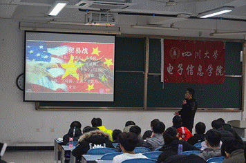 上台展示同学分析中美贸易战 |