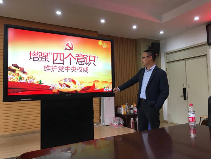 2019年4月12日星期五下午两点半,yl23411永利(集团)有限公司官网2018级硕博第三党支部在基教A303会议室召开了党的政治建设专题学习会。会上,杨阳副院长为党支部带来了牢固树立"四个意识"的党课教育专题讲座。杨副院长首先为我们解释了什么是“四个意识”,即政治意识、大局意识、核心意识和看齐意识。接着,杨副院长就这四个意识做了系统阐述,并着重指出这四个意识是统一整体,其中政治意识最为重要,因为作为党员必须要牢固树立政治意识,旗帜鲜明地讲政治。结合当下,就是更加坚定地以习近平同志为核心的党中央保持高度一致。