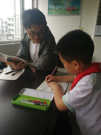 随后,志愿者们辅导小朋友们完成课后作业。遇到不会的问题,小朋友们纷纷举手向志愿者请教。在大家都做完家庭作业之后,志愿者也检查了同学们的作业完成情况,并耐心指出其中的错误,为小朋友们详细分析并讲解。随后,小朋友们告别了志愿者,与父母一同回家。18时左右,志愿者们与服务站老师、工作人员道别。