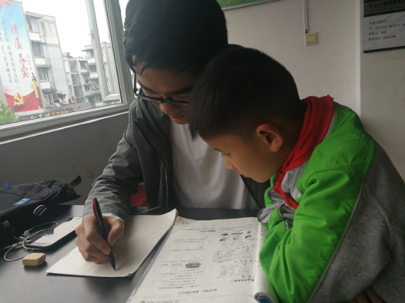志愿者正在给小朋友讲题 |