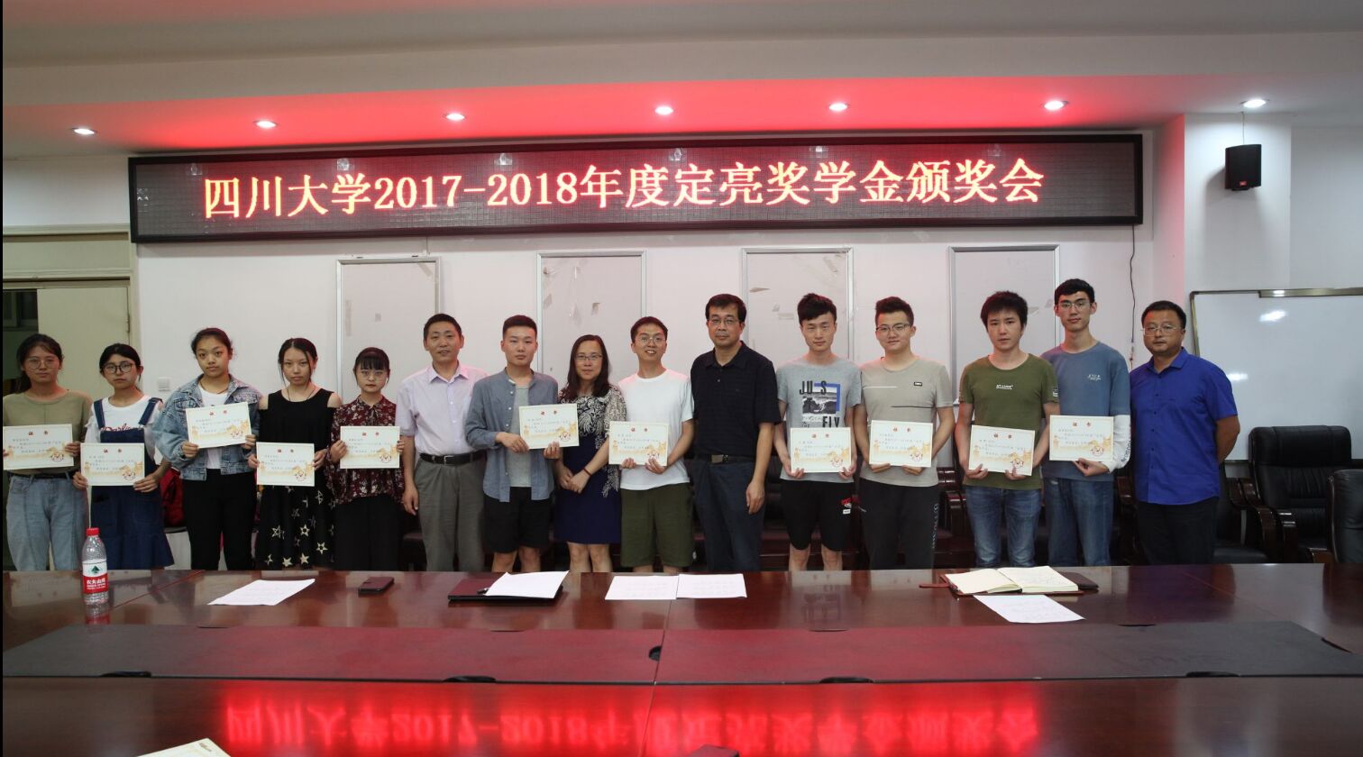 2019年6月20日上午,四川大学2017-2018年度定亮奖学金颁奖会在四川大学望江校区基础教学楼A303举行,参加本次颁奖会的有yl23411永利(集团)有限公司官网邰明松书记、冯国英院长、陈笃海副书记、张启灿副院长,学生科相关教师,以及全体获奖同学。