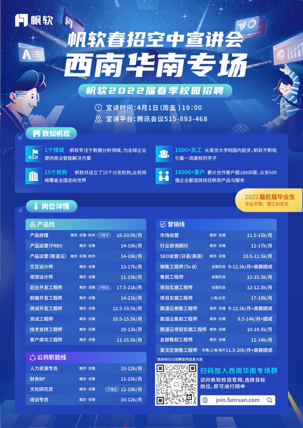 【明晚!月薪高达21K+的互联网IT公司——帆软西南华南空宣专场】