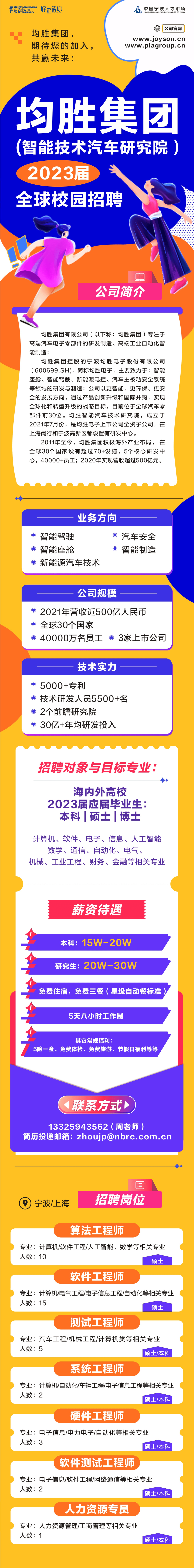 均胜集团(智能技术汽车研究院)2023届校园招聘