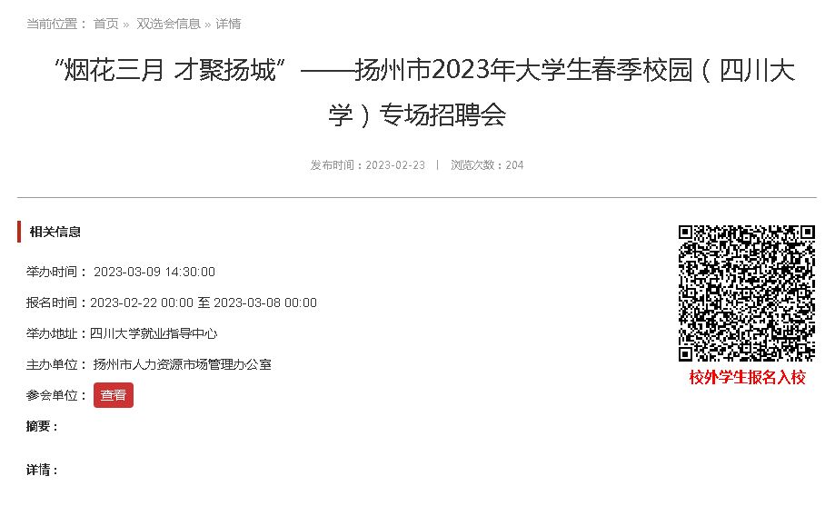 详情见链接http://jy.scu.edu.cn/index/index/jobfairdetail.html?data=MDAwMDAwMDAwMJG6n3_Ed6imi4qQtLh4eN-Kk7KXxoi3i7igr7-BZHxnkLZ9i8WGpNOaaKLSxKCalom6mNs