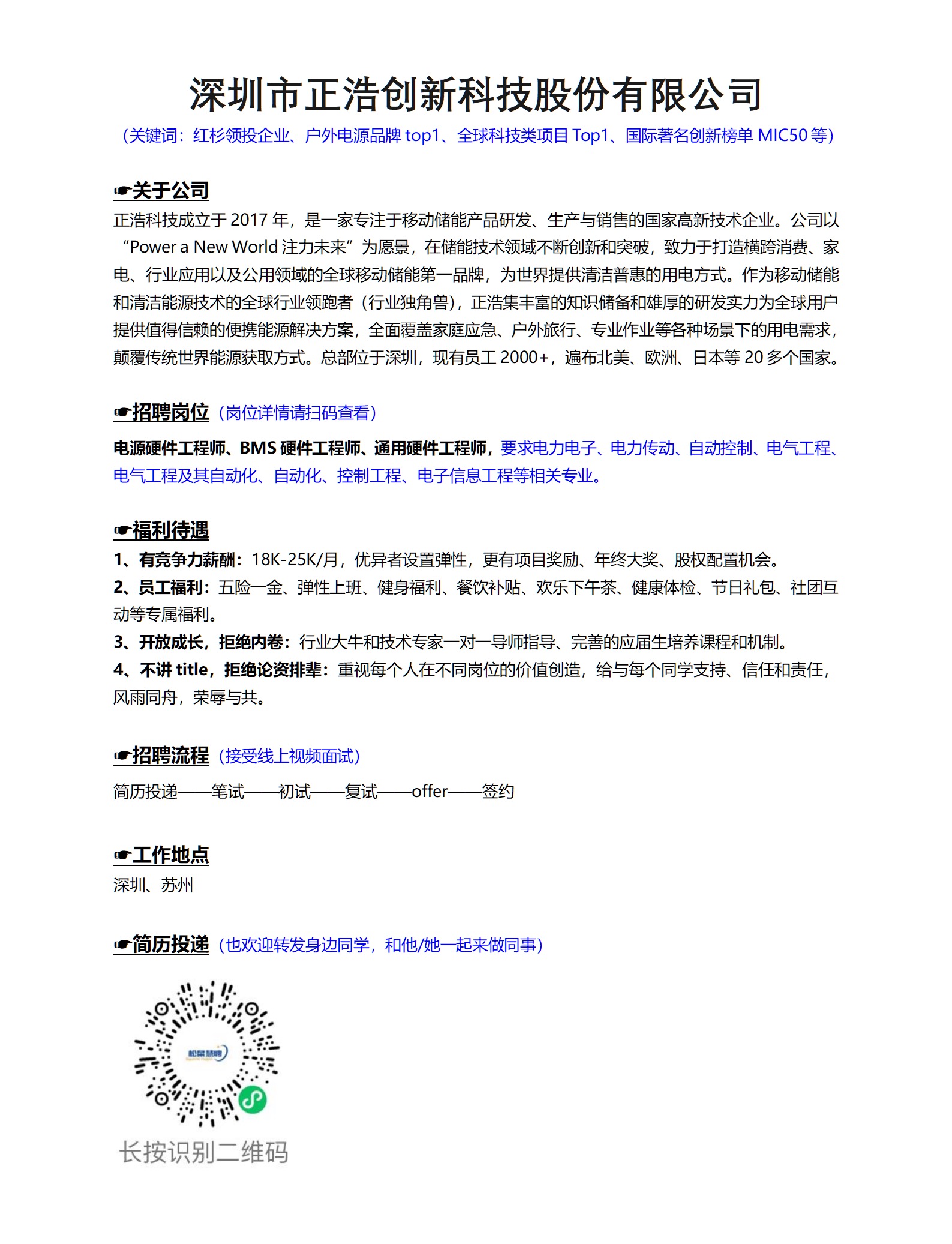 深圳市正浩创新科技股份有限公司2023届校园招聘(行业独角兽)