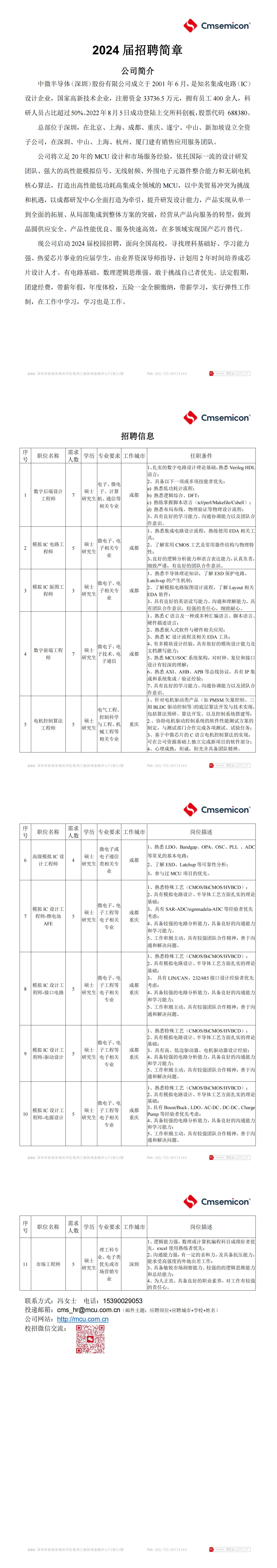10月26日中微半导体(深圳)股份有限公司2024届校园招聘会