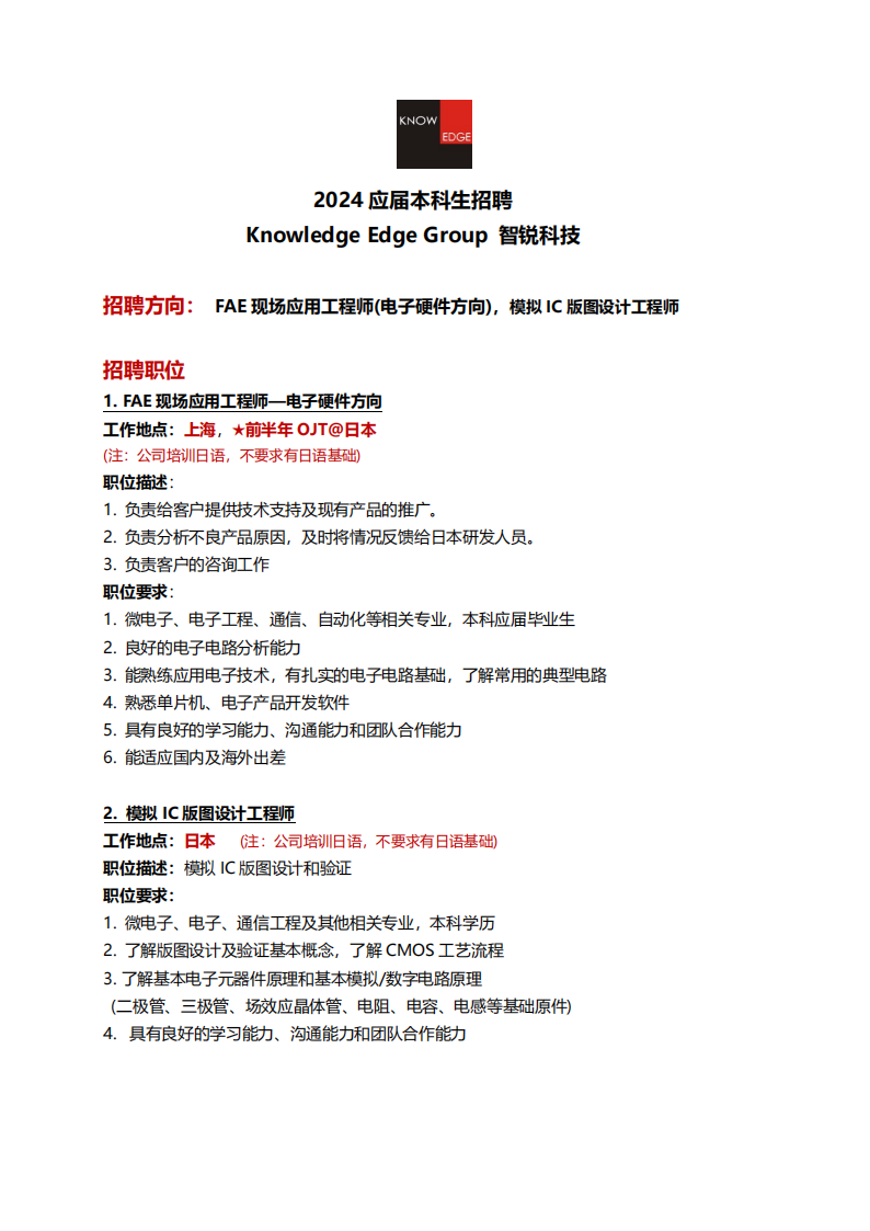 2024届春招-本科生国内及赴日工作招聘(电子工程师类)