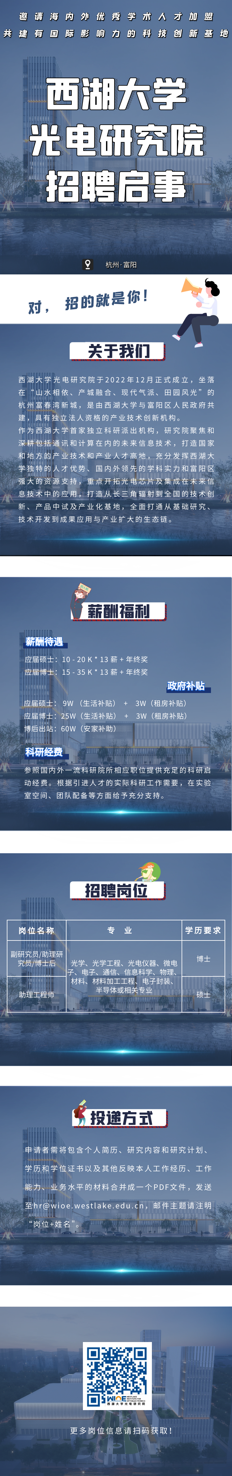 4月2日10点基A302西湖大学光电研究院招聘硕博