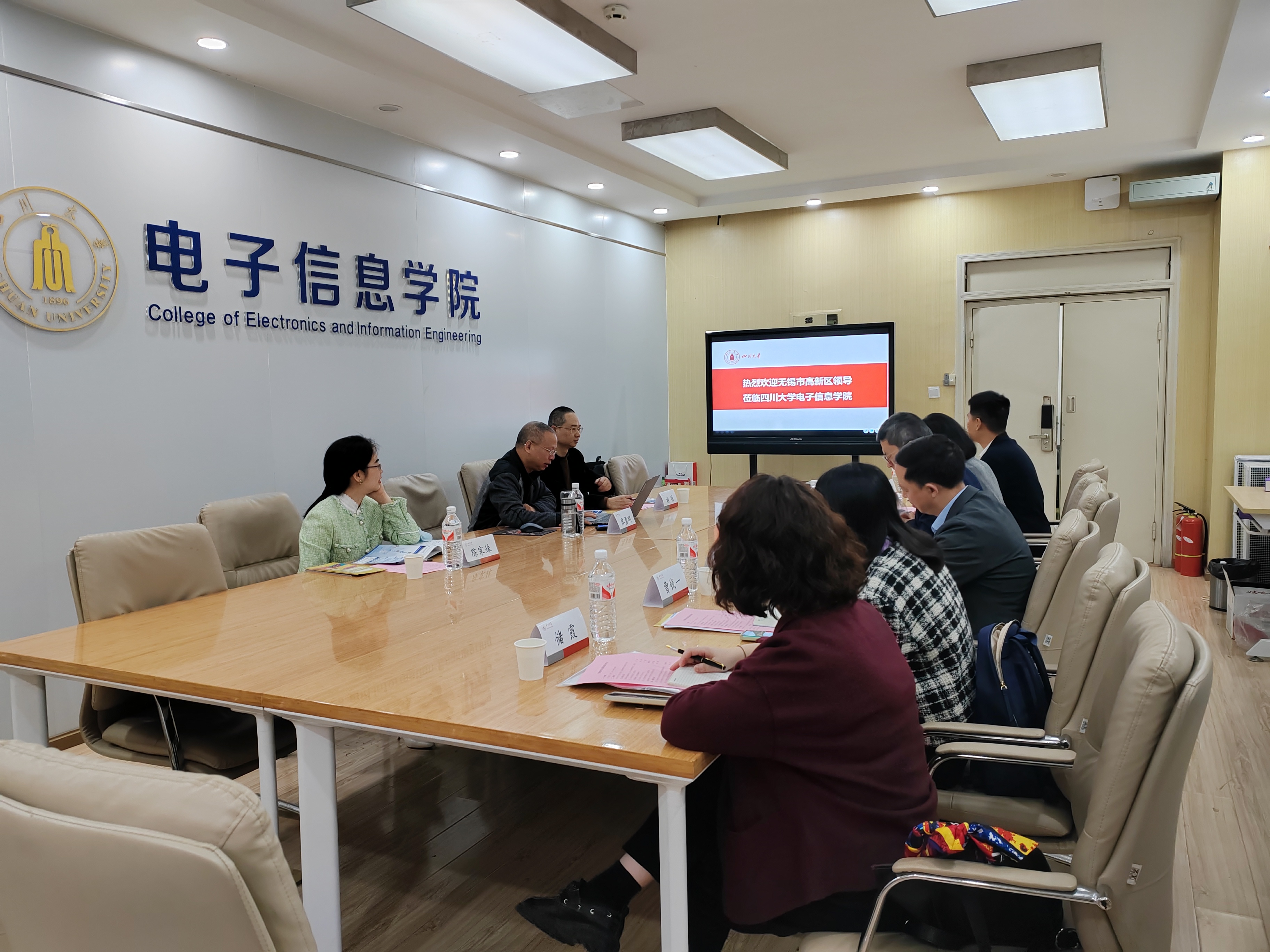 廖勇明副书记对孙部长带队来访欢迎,介绍了学院学科发展、人才培养、校企合作情况,孙局长介绍了无锡市高新区发展现状及人才工作相关政策,随后双方就推动人才培养合作、搭建学生实习实训平台、推动学生高质量就业等进行了交流。