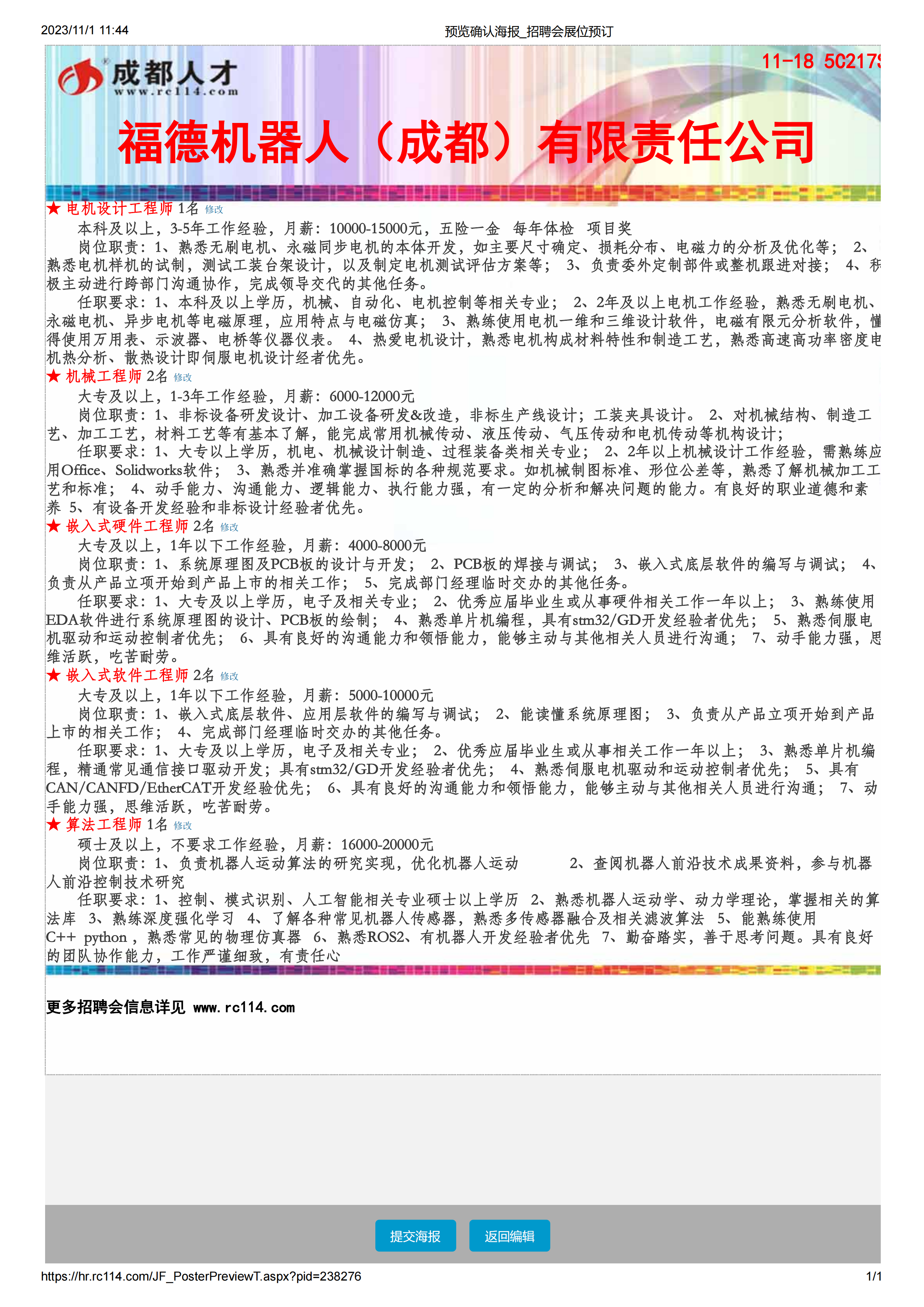 招聘需求表——福德机器人(成都)有限责任公司.xls