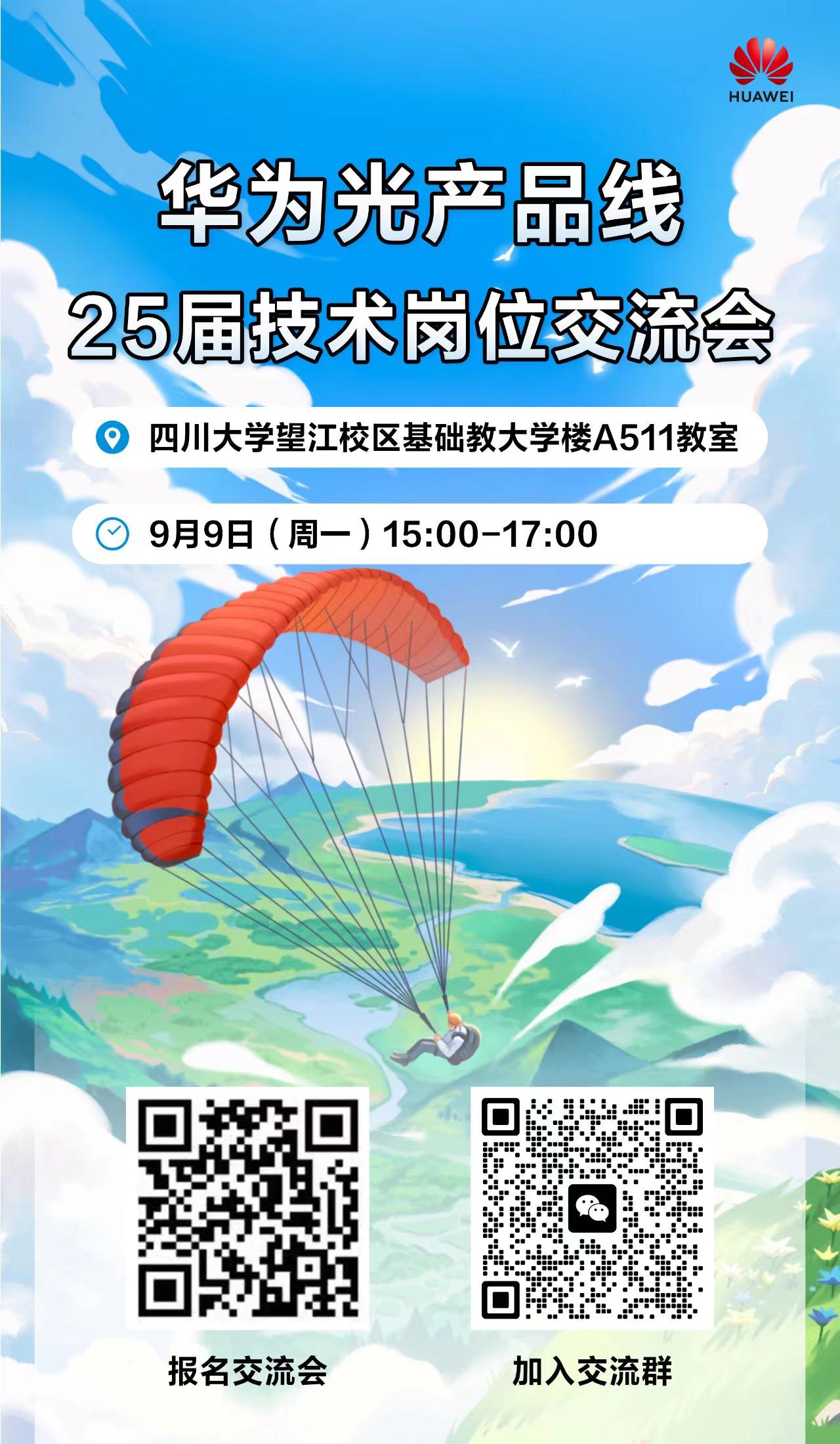9月9日 四川大学望江校区基A511 华为光产品线25届技术岗位交流会