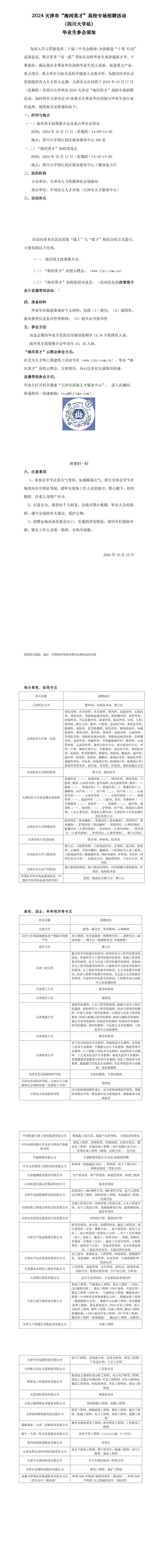 10月17日 14:00-17:50 就业中三楼 天津市“河海英才”高校专场招聘活动