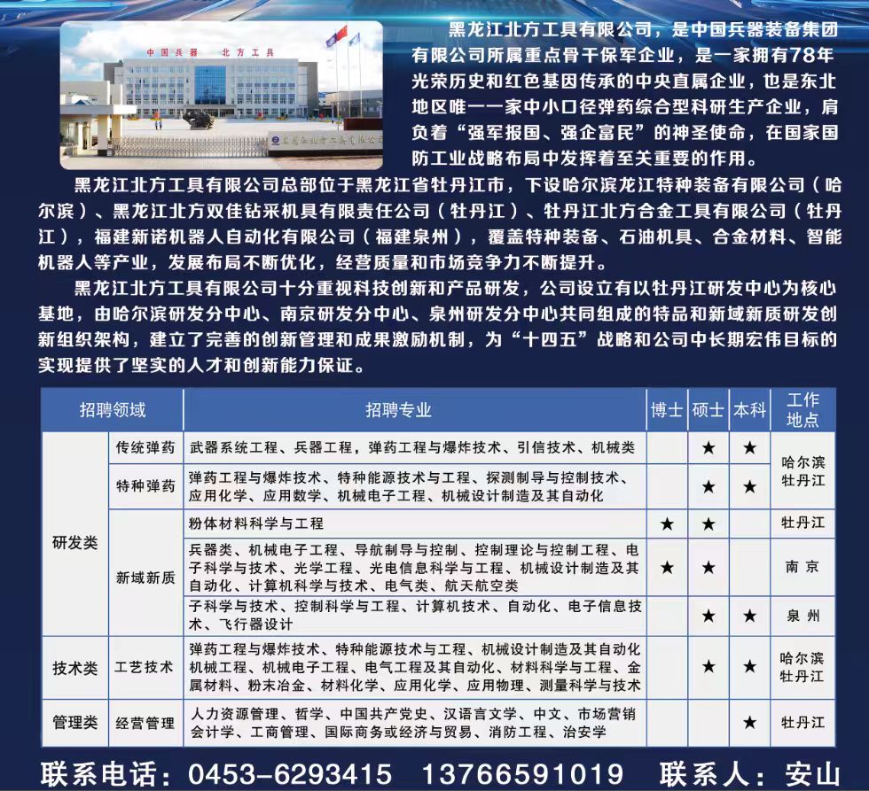 黑龙江北方工具有限公司(泉州、南京、牡丹江、哈尔滨)