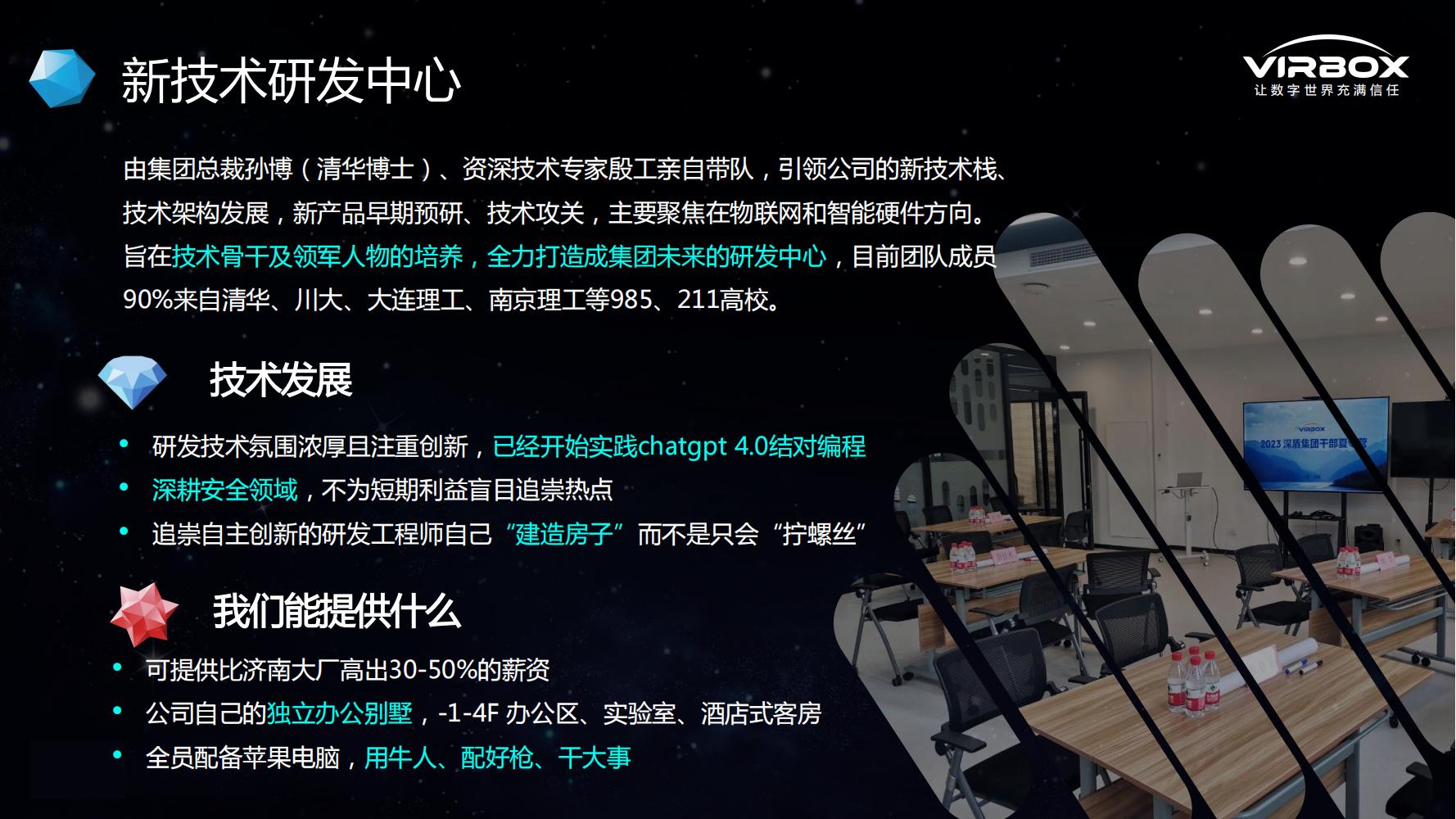 2. 总部在北京,2023年初成立济南深盾,包含新技术研发中心、数字化运营中心、营销总部,主要聚焦在安全物联网和智能硬件,旨在培养优秀人才作为公司技术骨干、领军人物;