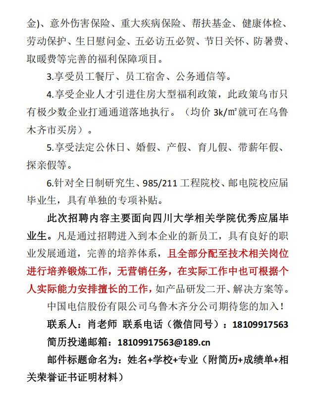 中国电信乌鲁木齐分公司招聘内容简介-四川大学(1).pdf