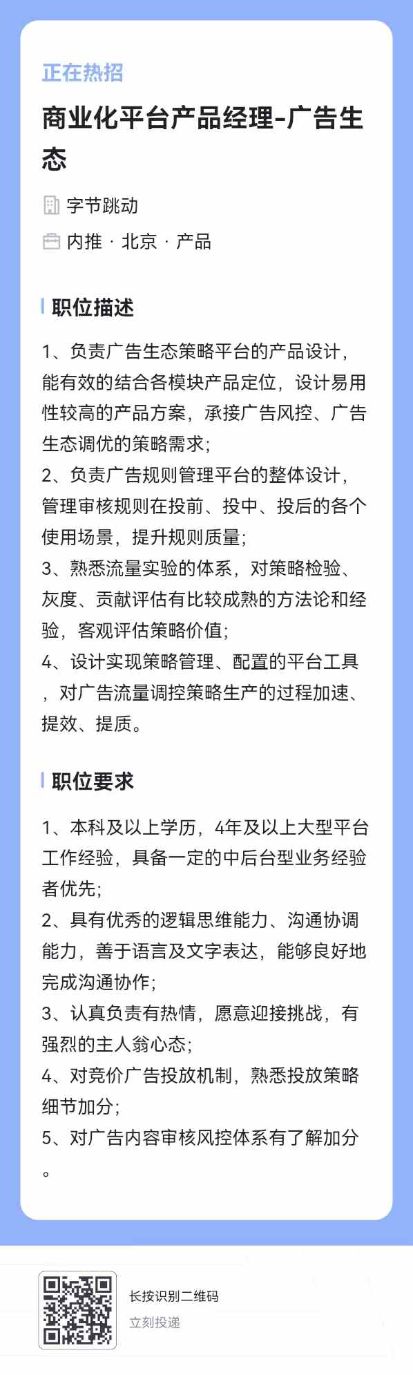 在字节的我院2018级硕士王校友(微信wy731505024)发消息,招26年毕业的校招生、实习生(可转正),以及社招商业平台产品经理,有看机会的同学或朋友欢迎推荐