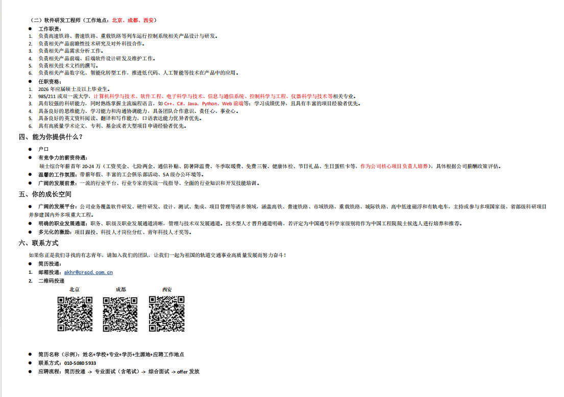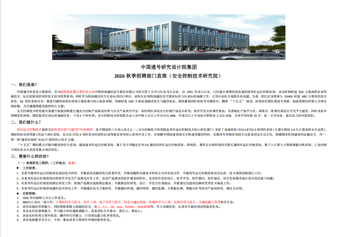中国通号研究设计院集团2026秋季招聘