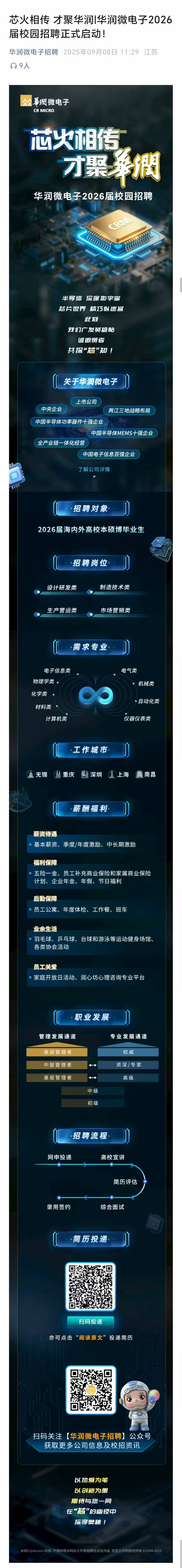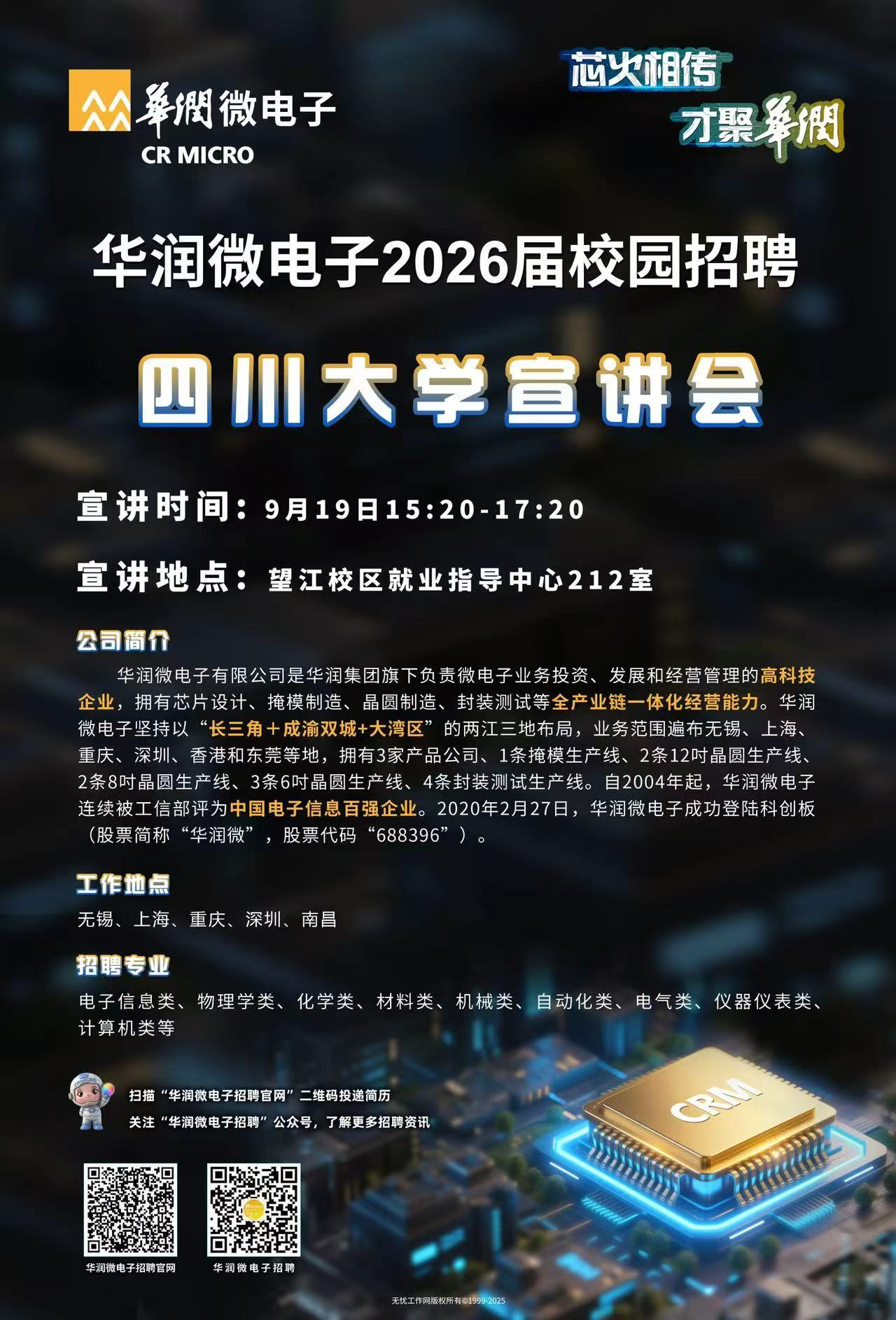 9.19 15:20 就业指导中心212室 华润微电子校园招聘