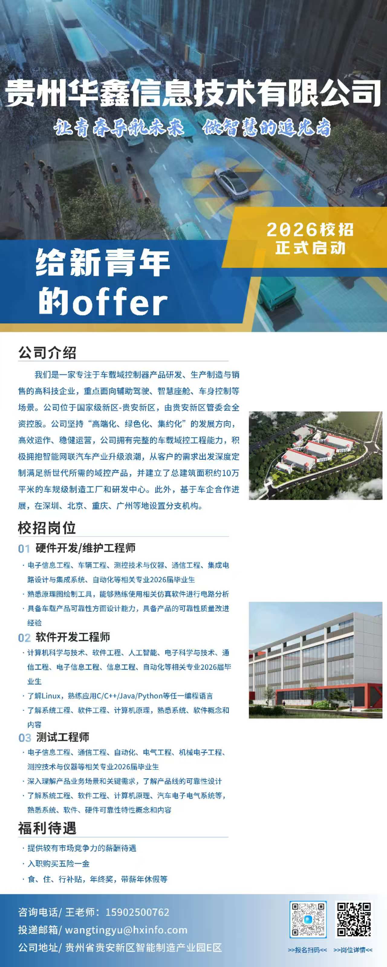 10月15日上午10:00基教C101贵州华鑫信息技术有限公司招聘(本科和硕士)