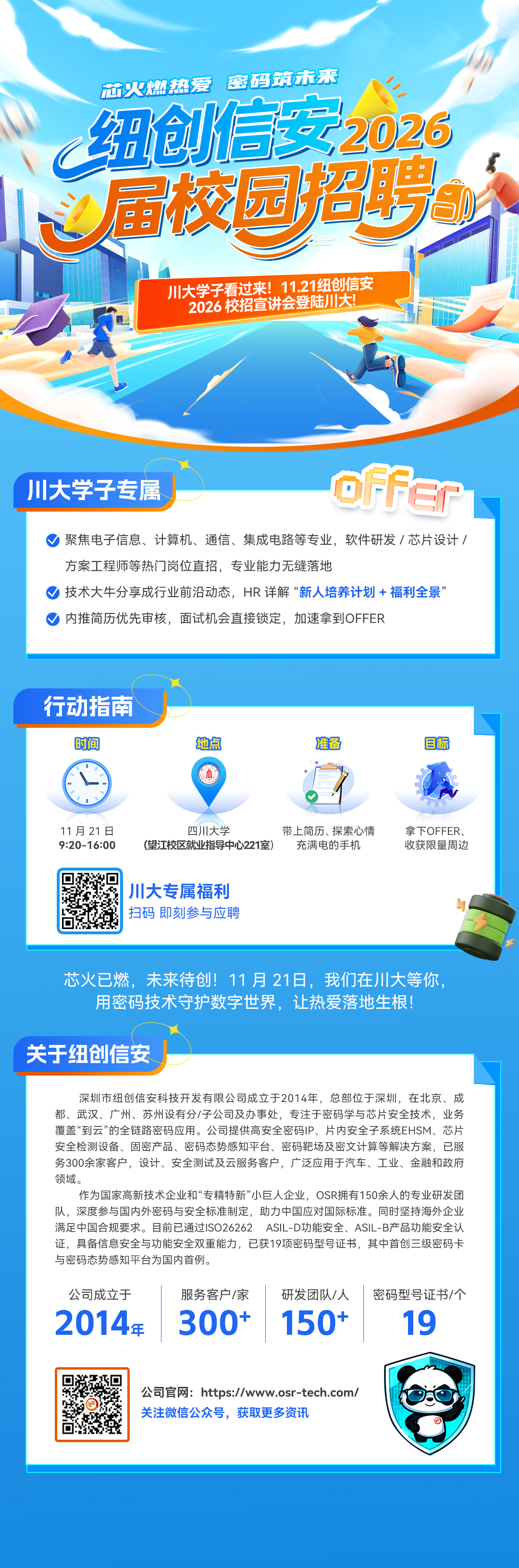 11月21日上午九点二十望江校区就业指导中心221室 纽创信安2026届校园招聘