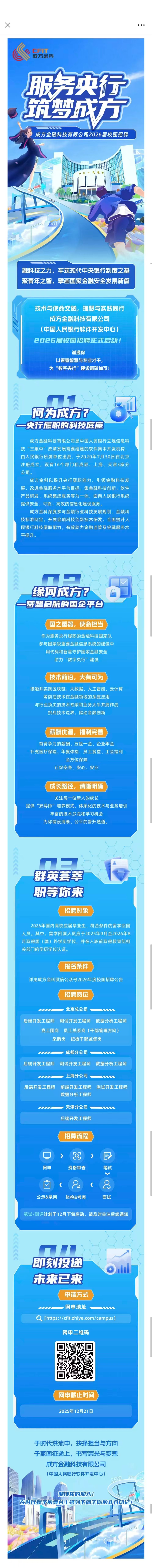 成方金科(中国人民银行软件开发中心)2026届校园招聘现已全面启动!