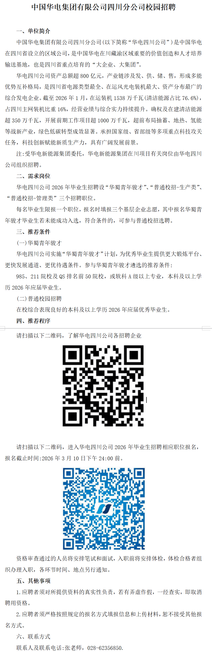 中国华电集团有限公司四川分公司校园招聘,需求专业有能动类、电气类、机械类、自动化类、水利水电工程类、
