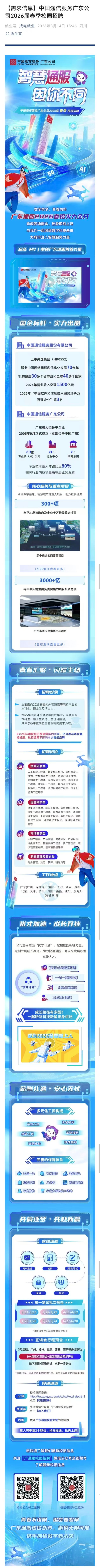 中国通信服务广东公司2026校园春招