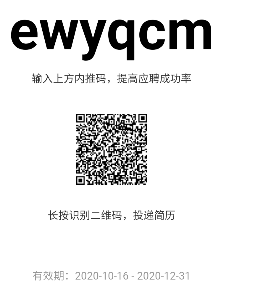 我们为学院负责人推荐的简历设置了单独的通道,请同学们扫描学院负责人提供的内推码进行投递,我们会优先进行筛选和面试。