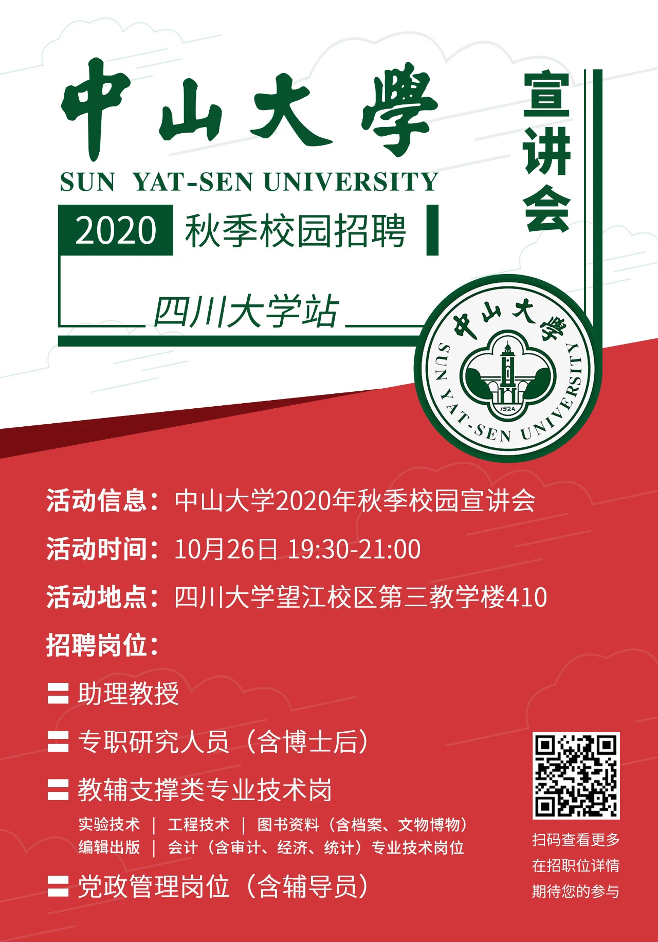 10月26日19:30东3-410中山大学招聘