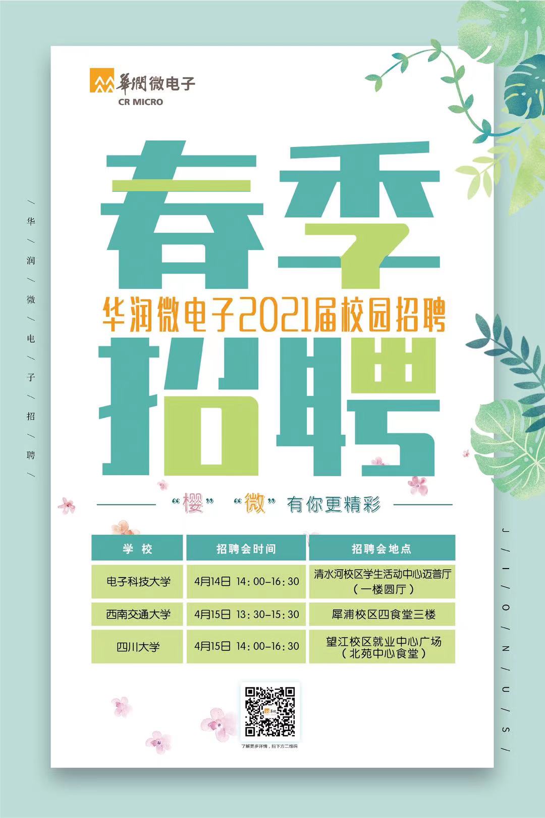 4月15日14点北园中心食堂广场华润微电子招聘