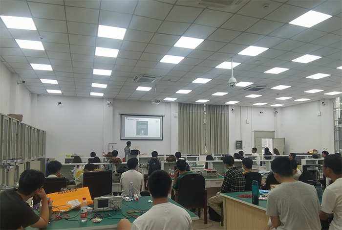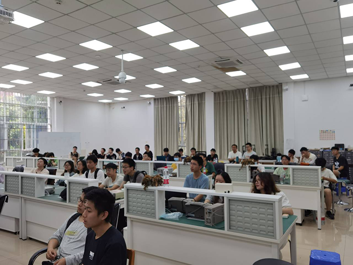 然后,主讲嘉宾给与会同学们分享了关于电赛电子设计的技术知识要点,并结合此次电赛的特点和自己对于目前电子设计技术的优缺点、发展和应用等,从多个方面交流了自己的看法和一些电赛备赛技巧,还分享了许多实用的竞赛经验。在分享经验的过程中,姜浩结合生动形象地例子为同学们进行解说,整个教室的同学们认真仔细地聆听着主讲人的经验分享,现场充满浓厚的学习氛围。讲座结束后同学们纷纷表示受益匪浅,了解到了许多从没想到过的窍门和技巧。
