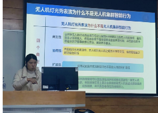 图二:孙亚平老师为大家解释无人机集群智能行为