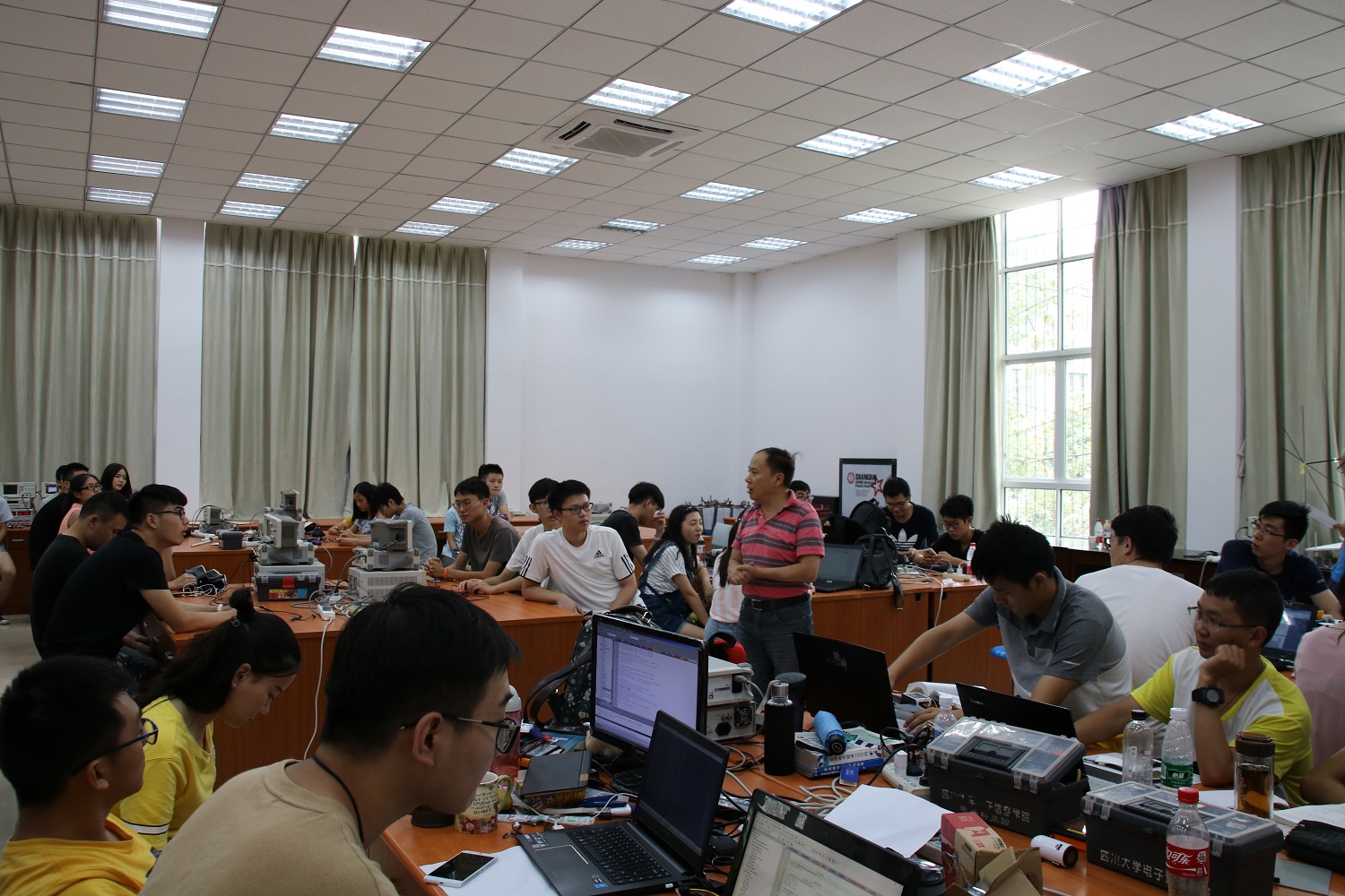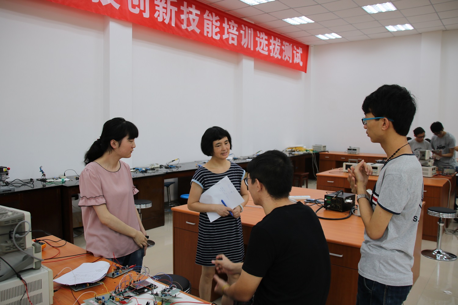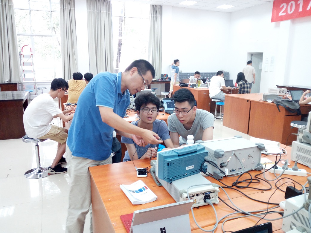 本次赛前培训共有来自学院船模协会、电子竞赛协会、电磁智能车协会等二十余个学术型社团的通过选拔的同学参加,赛前培训主要从双向DC-DC变换器、简易数字示波器、承载平台平衡调整系统以及增益可控视频放大器等几个方面进行,通过选拔的同学,三人为一组,以团队的方式进行赛前培训。