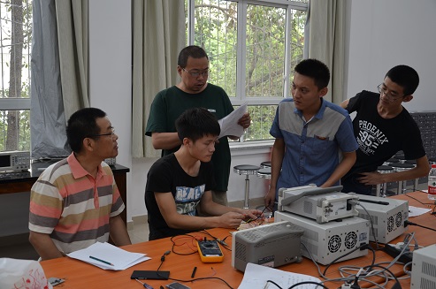 2016年7月29日和30日,yl23411永利(集团)有限公司官网的指导老师对参加本次四川省电子设计竞赛的同学完成的作品进行了校内测试,参加本次测试的有副院长周新志教授、徐家品教授、王正勇副教授、华伟副教授、植涌老师、夏文龙老师、孟庆党老师、刘俐老师、陈晓娟老师以及李运国老师。