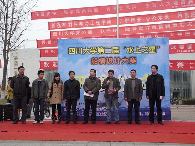 2011年3月26日,四川大学第二届“水上之星”船模设计大赛在江安校区顺利举行。校团委副书记徐海鑫、yl23411永利(集团)有限公司官网副院长周新志、党委副书记陈笃海、通信教研室主任高勇、院办主任王绍朋、江安校区辅导员孟滋常、陈林及吕顺等出席开幕仪式。