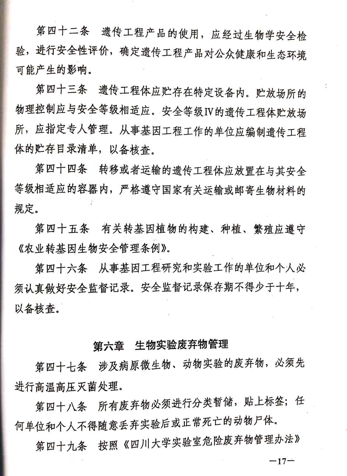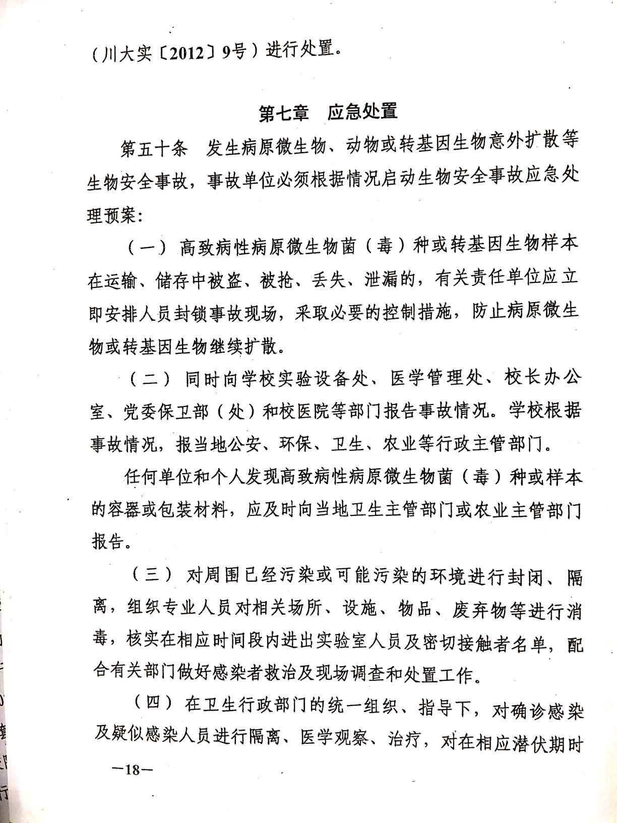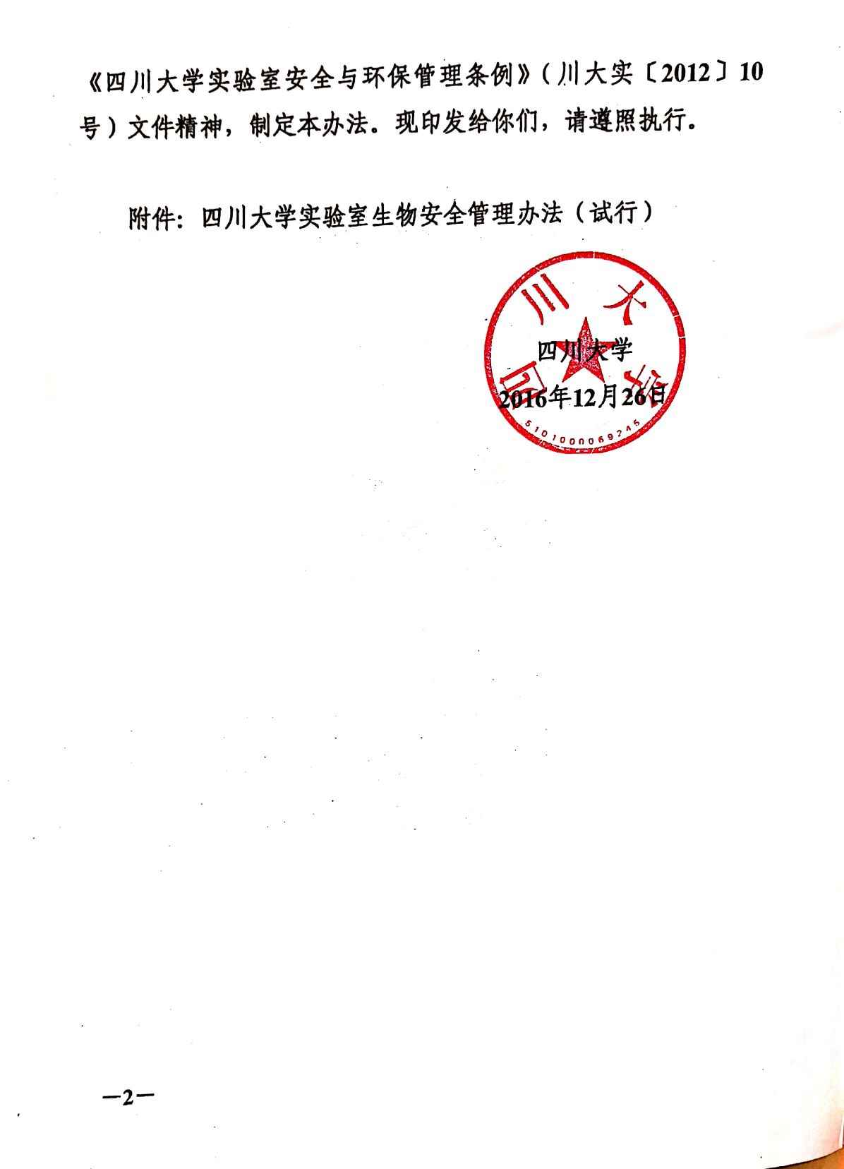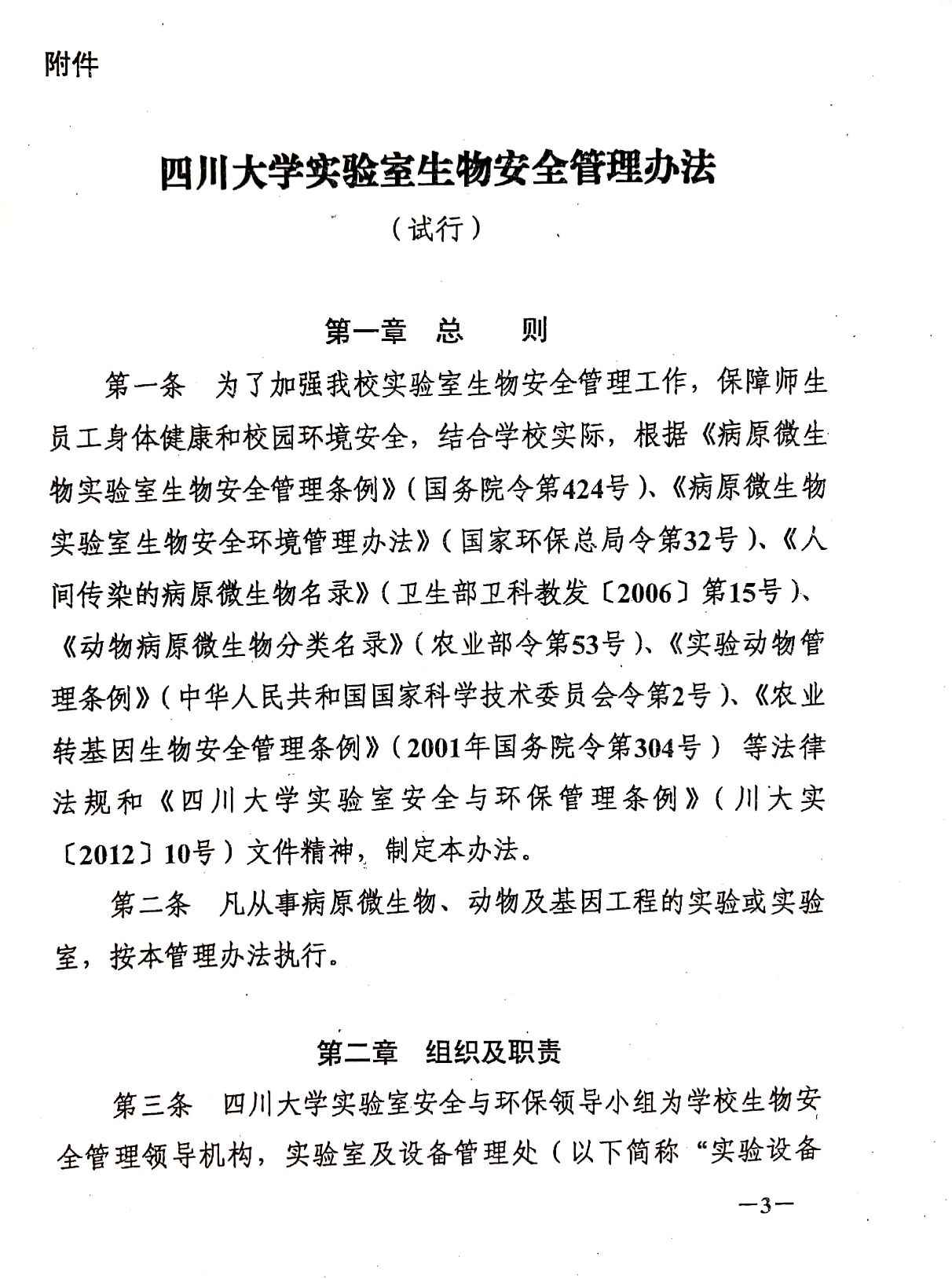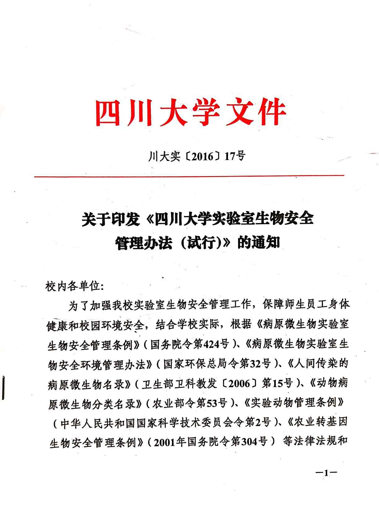 四川大学实验室生物安全管理办法(试行)