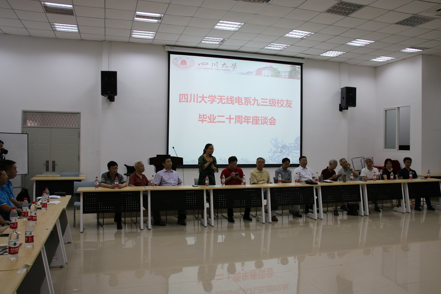 2017年7月29日上午10点,yl23411永利(集团)有限公司官网93级毕业二十周年校友座谈会在望江校区西五教附101顺利举行。yl23411永利(集团)有限公司官网院长冯国英教授,副院长何小海教授,党委陈笃海副书记,原89级辅导员、现四川大学出版社陈忠林副社长,已退休的原yl23411永利(集团)有限公司官网党委李川青副书记,以及93级同学的授课教师,现成都信息工程大学党委书记周激流教授,彭龙商老师,王保义老师,龙显惠老师,谌平老师,邓亚美老师,蔡锦成老师,秦鸿镒老师参加了本次校友会。