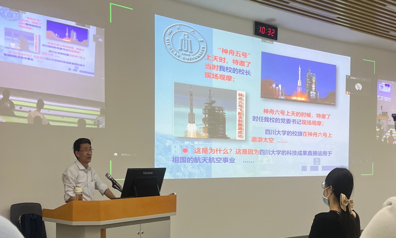 在开学典礼结束后,四川大学党校张诚教授讲授了以“新时代共产党员的条件”为主题的党课。在行课过程中,张诚教授分别从“坚定共产主义理想信念”、“牢记全心全意为人民服务的根本宗旨”、“自觉严守党规党纪”等几个方面展开论述了如何成为新时代优秀的共产党员。同时,张教授以四川大学的发展为例,阐明了中国共产党为什么行和社会主义为什么好。张诚教授结合自身经历鼓舞鼓励学员,话语激情洋溢、语调铿锵,深深打动了学员们。最后,张诚教授希望每位同学都能够不忘初心,牢记使命,并以习近平总书记的一段话与同学共勉:“新时代的中国青年要以实现中华民族伟大复兴为己任,增强做中国人的志气、骨气、底气,不负时代,不负韶华,不负党和人民的殷切期望!”