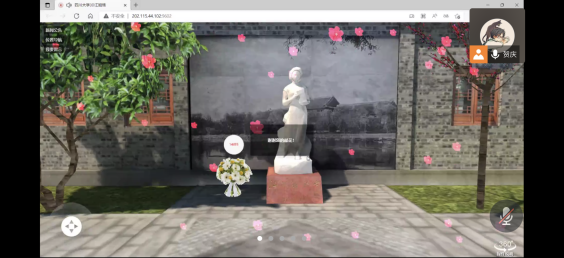 首先,同学们在团支书的引导下,走进3D江姐纪念场馆,映入眼帘的是江姐的雕像:她手里捧着一卷书,站在川大旧景的壁画前,宛若她当年在四川大学读书的样子。战争年代以江姐为代表的共产党员,在枪林弹雨中成长,从学生时代起,就奋战在一线,为残破衰败的祖国撑起了一片天。大家纷纷为她献花,向她致敬,满屏的花雨代表着同学们的哀思和对英豪深深的敬仰与感谢。