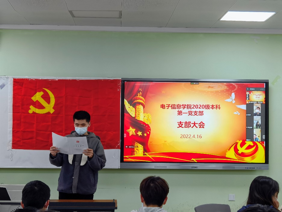 2022年4月16日下午2时,yl23411永利(集团)有限公司官网2020级本科第一党支部在江安校区一教D102召开支部大会,2020级辅导员兼支部书记陈晓娟老师主持了本次会议,本次会议主要对李钰晶、刘建乐等共计14位发展对象是否成为预备党员这一问题进行了表决。