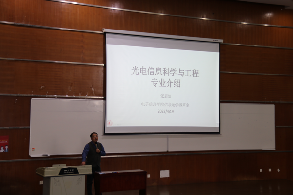 会议伊始,孟滋常老师简短地讲解了近年来光电信息工程专业保研政策的改变,并介绍了出席此次讲座的嘉宾。紧接着,张启灿副院长发言,他回顾了四川大学光学工程专业的发展历程,并且详细介绍了光学工程的五个主要发展方向、未来就业方向、博士点研究方向以及光电信息工程的教师团队。接下来,李大海老师分享了自己正在进行的一些研究项目,他指出兴趣是最好的老师并鼓励同学们将眼光放长远,培养自己的兴趣。而后,申俊飞和邓国亮老师也分别分享了他们的研究领域——人工智能和激光。两位老师结合自身经历谈到自己从本科以来学习光电的心得以及在教学生活中所体会到的“科技强国”与“家国情怀”。最后,吴周杰老师分享了自己作为一名“追光者”从本科以来的学习生涯。